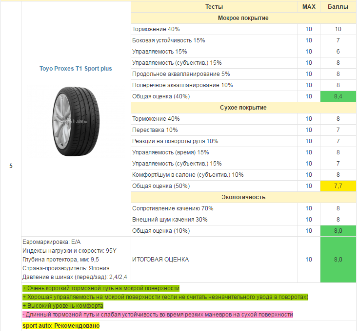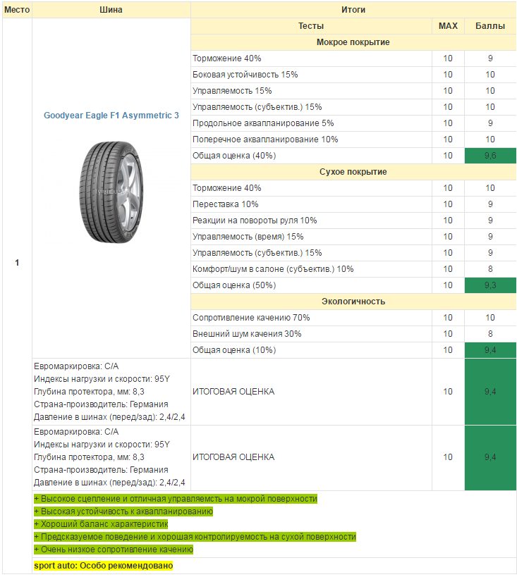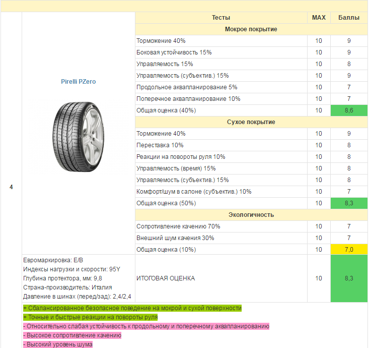 В отношении тормозных свойств отдельного внимания заслуживают Michelin Pilot Sport 4. Кроме того, шины данной модели отличились способностью экономить топливные затраты и максимальной стойкостью к аквапланированию.