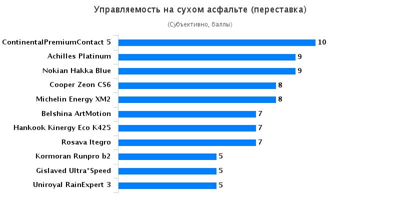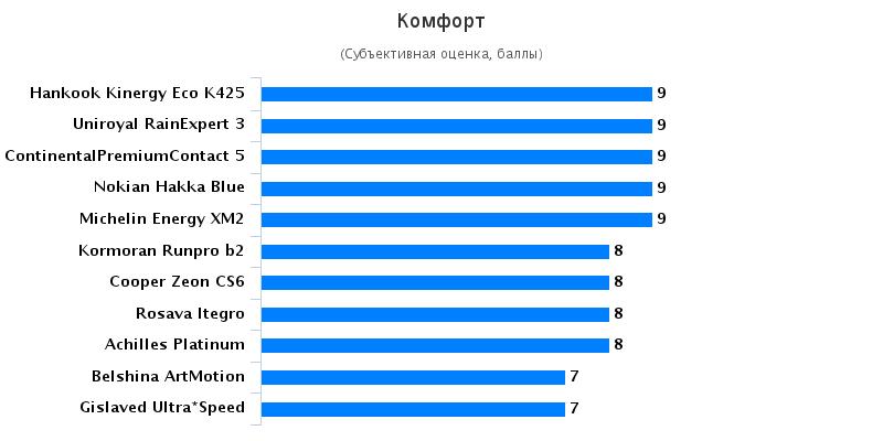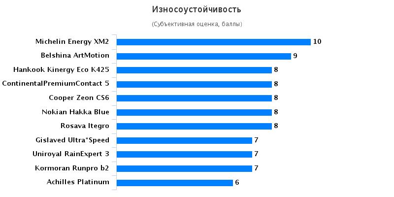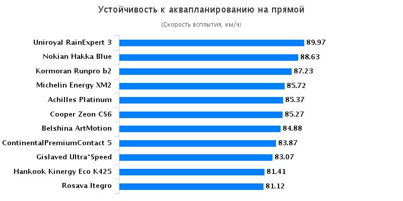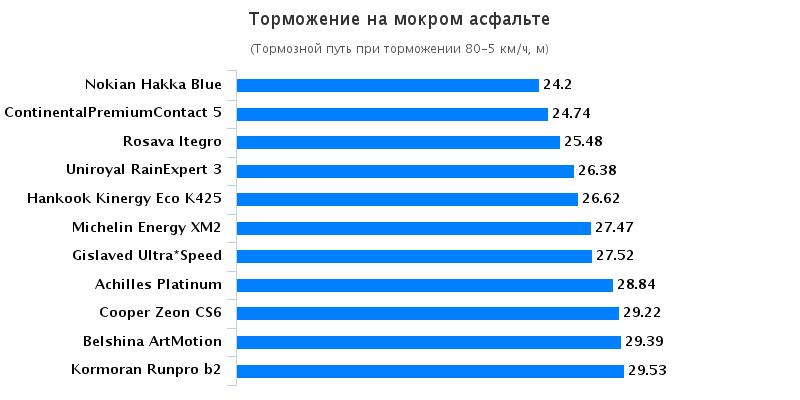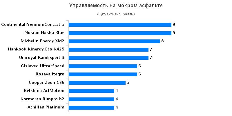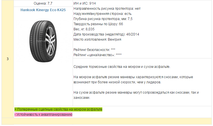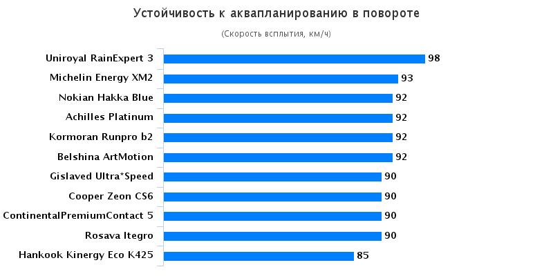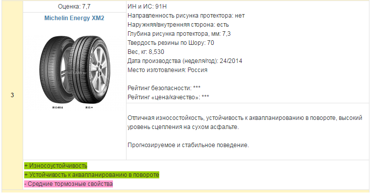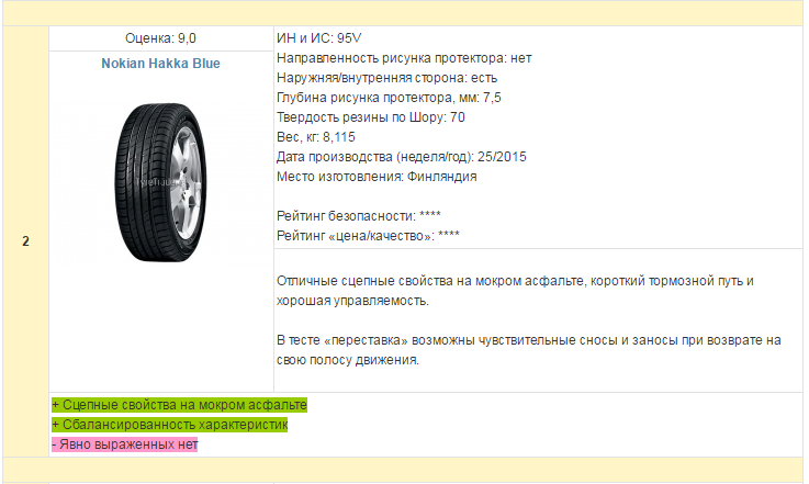На втором месте оказались автошины Nokian Hakka Blue, продемонстрировавшие отличную управляемость и непревзойденные сцепные качества. Третью позицию в рейтинге заняли Michelin Energy XM2, отличившиеся максимальной устойчивостью к износу, предельной устойчивостью к аквапланированию и высокопрочным каркасом, а также Hankook Kinergy Eco K 425, которые показали средний уровень сбалансированности. Исключение для шин Hankook Kinergy Eco K 425 составила лишь устойчивость при преодолении поворотов.