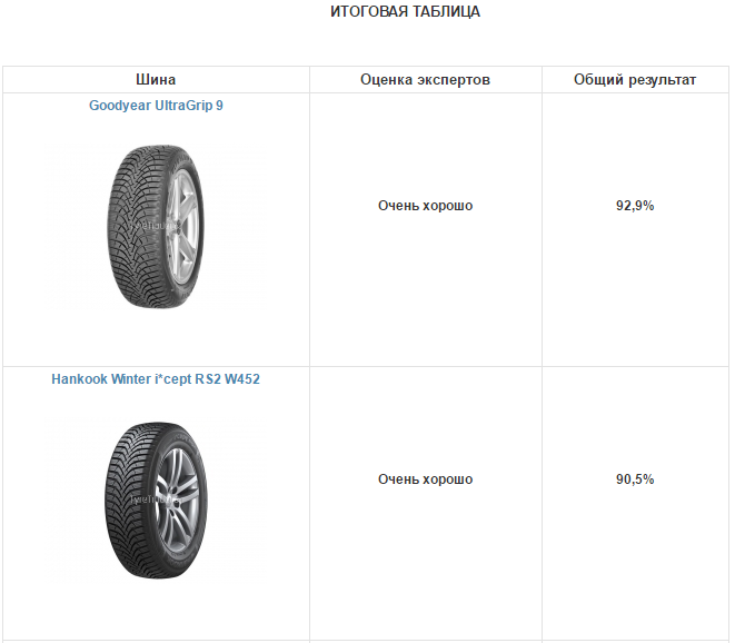 Победителями по общим параметрам оказались Goodyear, второе место заняли новые Hankook, третье досталось Continental.