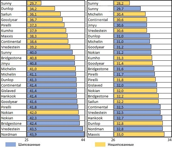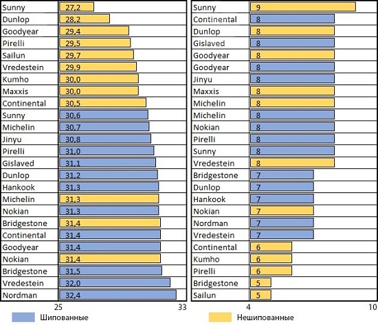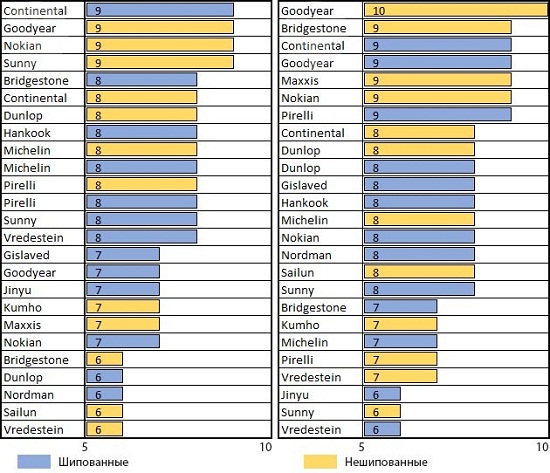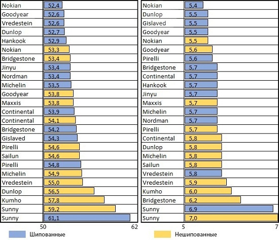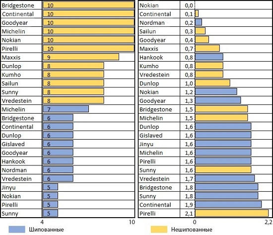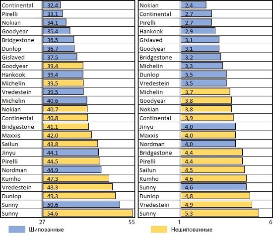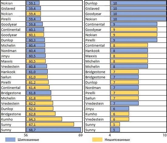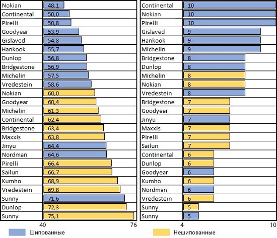 Предсказуемо шины премиум брендов оказались в списке лидеров. Так же некоторые бюджетные шины показали довольно хорошие результаты такие как Maxxis покрышки китайского производства продемонстрировали достойные качества..