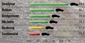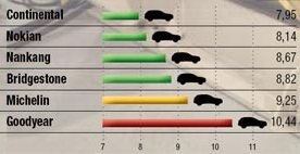 Когда эксперты решили проверить сопротивляемость шин к эффекту аквапланированию, отличия между участниками теста стали более существенными. В этой дисциплине разница между самыми безопасными Goodyear и быстрее всего теряющими контакт с асфальтом Continental составила 9,1 км/ч.