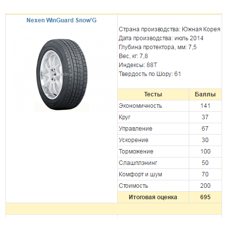 Перечень протестированных покрышек: