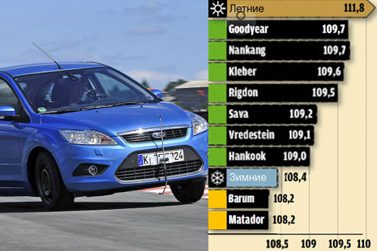 Высокая устойчивость в поворотах – основная предпосылка для быстрого прохождения слалома. Goodyear приходят сразу после зимних, а Barum и Hankook также остаются в списке лидеров. При этом на шинах Sava, Matador и Nankang, тестовый автомобиль заносит, и он поворачивается вокруг своей оси.