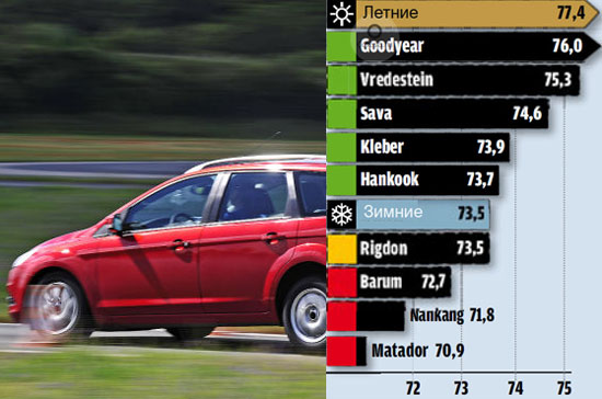 Где всесезонные шины действительно впереди всех, так это в тесте на сопротивление качению. Если считать, что 5-процентное снижение сопротивления уменьшает расход топлива на 1%, то по сравнению с летними шинами новые Kleber могут снизить потребление горючего на 6%.