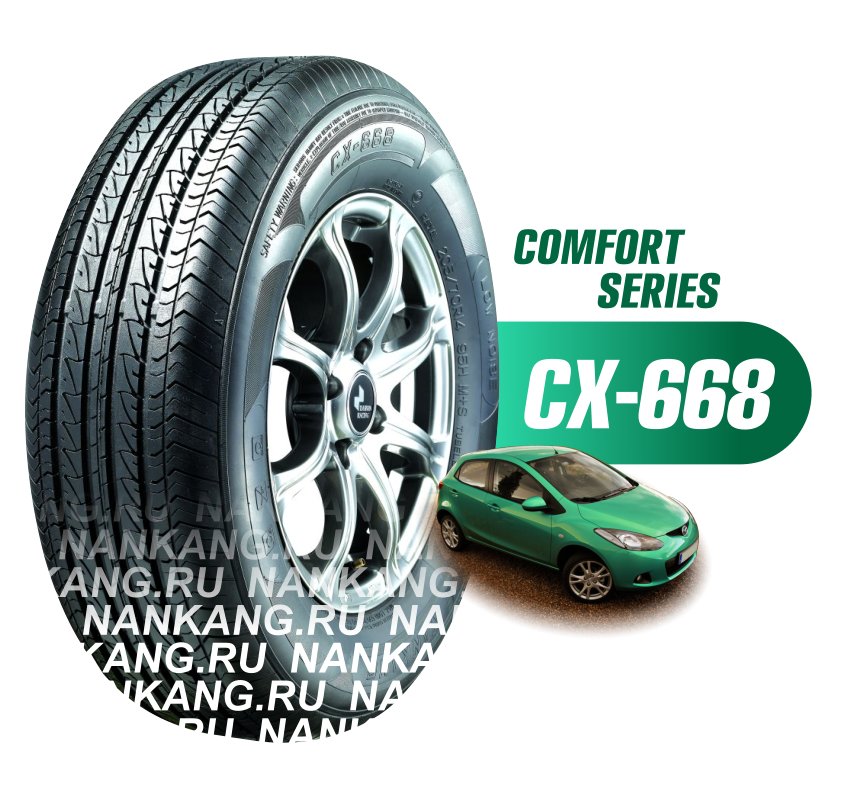 Хорошее сцепление с дорогой, приёмистость в управлении, эффективное сопротивление аквапланингу и комфорт движения - основные характеристики шин CX-668. Четыре прямых дренажных канавки протектора шин CX-668 эффективно увеличивают сопротивление шины гидропланированию, обеспечивая маневренность на мокрой трассе. Две продольных канавки по бокам шин CX-668 отводят и компенсируют центробежную силу с боков, что позволяет избежать неравномерного износа. Узкие прорези в протекторе шин CX-668 эффективно отводят шумогенерирующие элементы. Дизайн протектора шин CX-668 позволяет увеличить комфорт при движении. Шина CX-668 обеспечивает комфортное движение с минимальным уровнем шума.