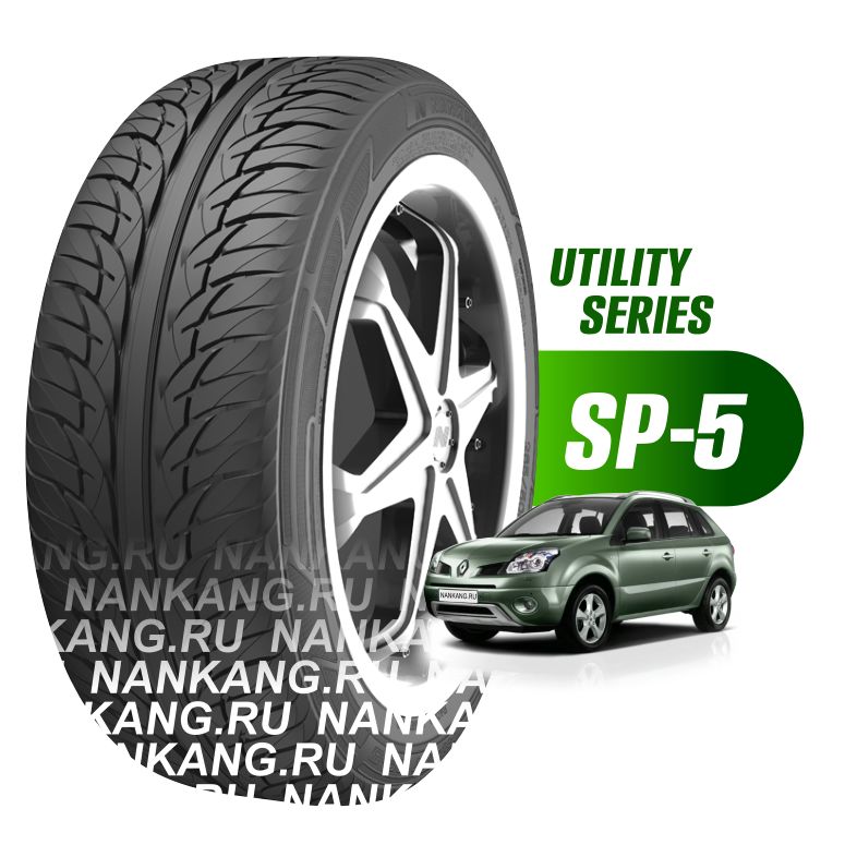 Скорость, маневренность, устойчивость, уверенное прохождение поворота любой сложности, эффективное сопротивление аквапланнигу - вот характеристики шины Nankang SP-5. Все эти характеристики воплощены в стильном и агрессивном дизайне, который подчеркнет достоинства вашего автомобиля. Особенность шин Nankang SP-5: Специальная геометрия центральных блоков протектора шины SP-5 уменьшает шум. Две центральных канавки шины Nankang SP-5 Две центральных канавки шины SP-5 обеспечивают хорошую управляемость и устойчивость автомобиля на мокрой трассе (уменьшение аквапланирующего эффекта). Ламели, добавленные на внешниеЛамели, добавленные на внешние блоки протектора шины SP-5 обеспечивают дополнительное сцепление с дорогой и отвод шумогенерирующих элементов. Специальная технология NSS (Noise Simulation System) позволила минимизировать шум при движении, обеспечив тем самым дополнительный комфорт. Шина SP-5 обладает придает вашему джипу идеальную маневренность на трассе, обеспечивает экономию топлива и протектора.